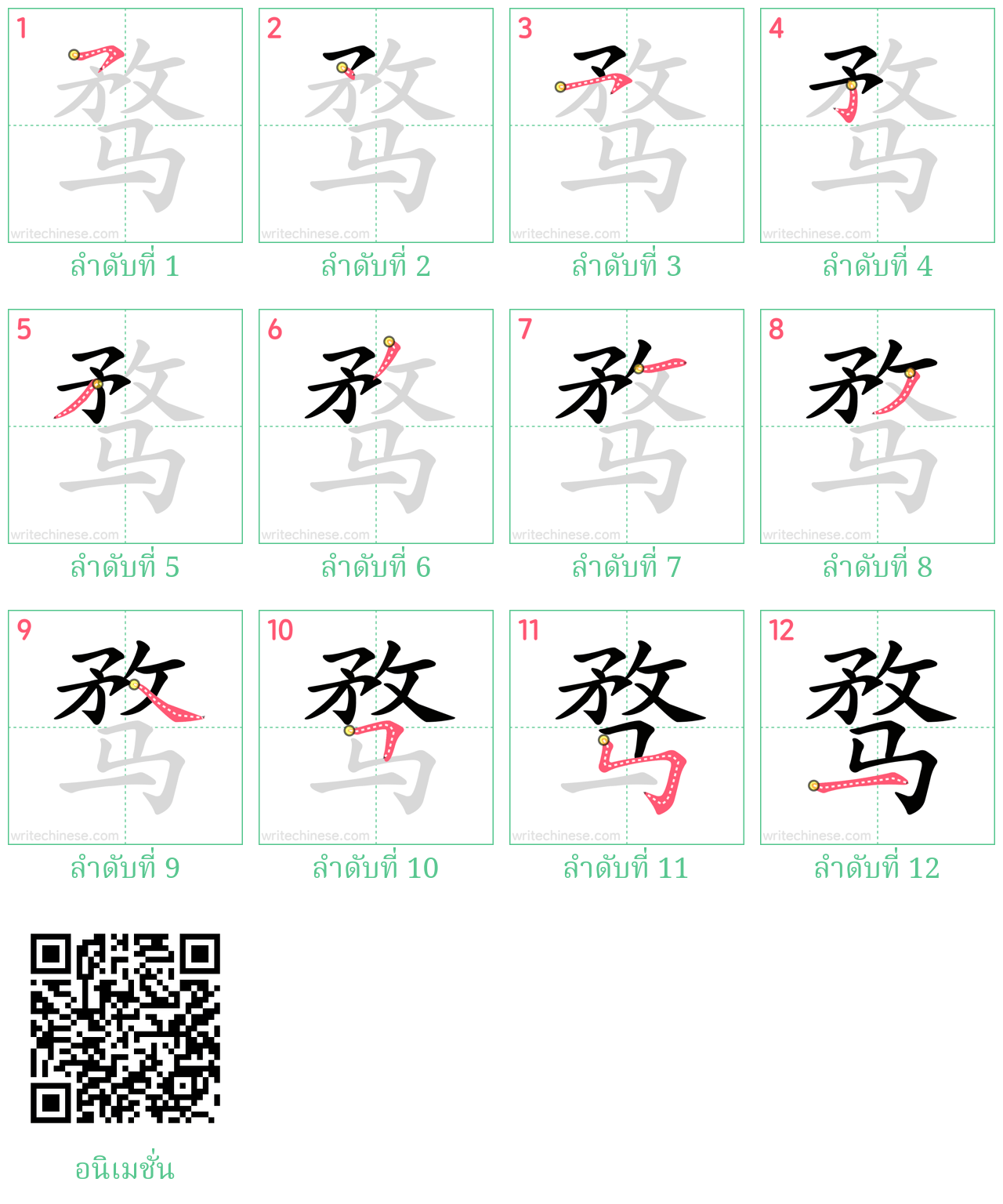 รูปภาพลำดับการเขียนตัวอักษรจีนทั้งหมด ภาพเคลื่อนไหว วิดีโอ และแผ่นงานพิมพ์ที่สามารถพิมพ์ได้ในเว็บไซต์นี้ เป็นฟรีสำหรับการใช้ส่วนบุคคลหรือใช้ในห้องเรียน กรุณาระบุแหล่งที่มาและ URL ของเว็บไซต์เมื่อนำมาใช้