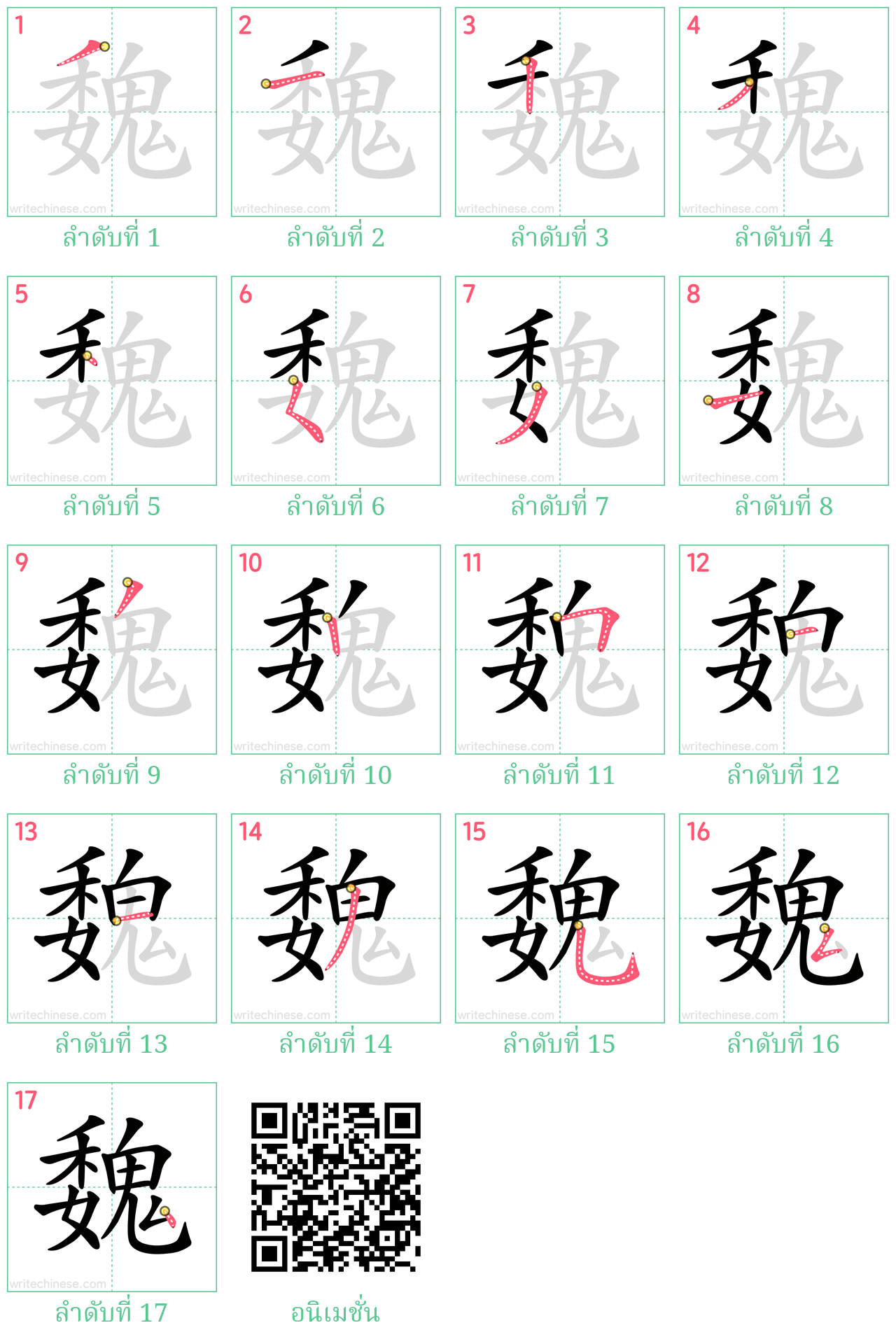 เรียนรู้การเขียนอักษรจีน "魏" ขีดละขีดด้วยคำแนะนำขั้นตอนที่ชัดเจน