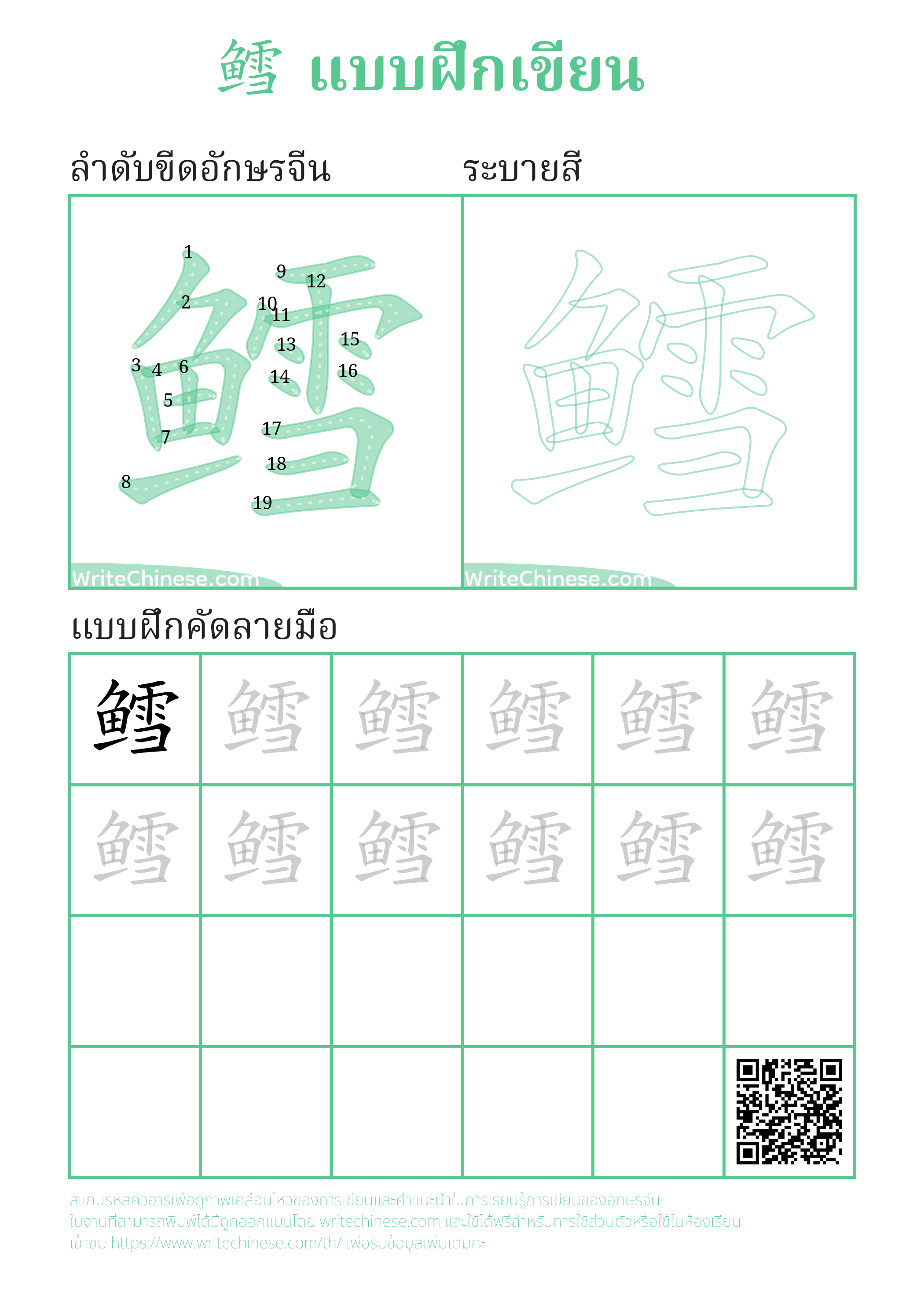เรียนรู้การเขียนอักษรจีน "鳕" ขีดละขีดด้วยคำแนะนำขั้นตอนที่ชัดเจน