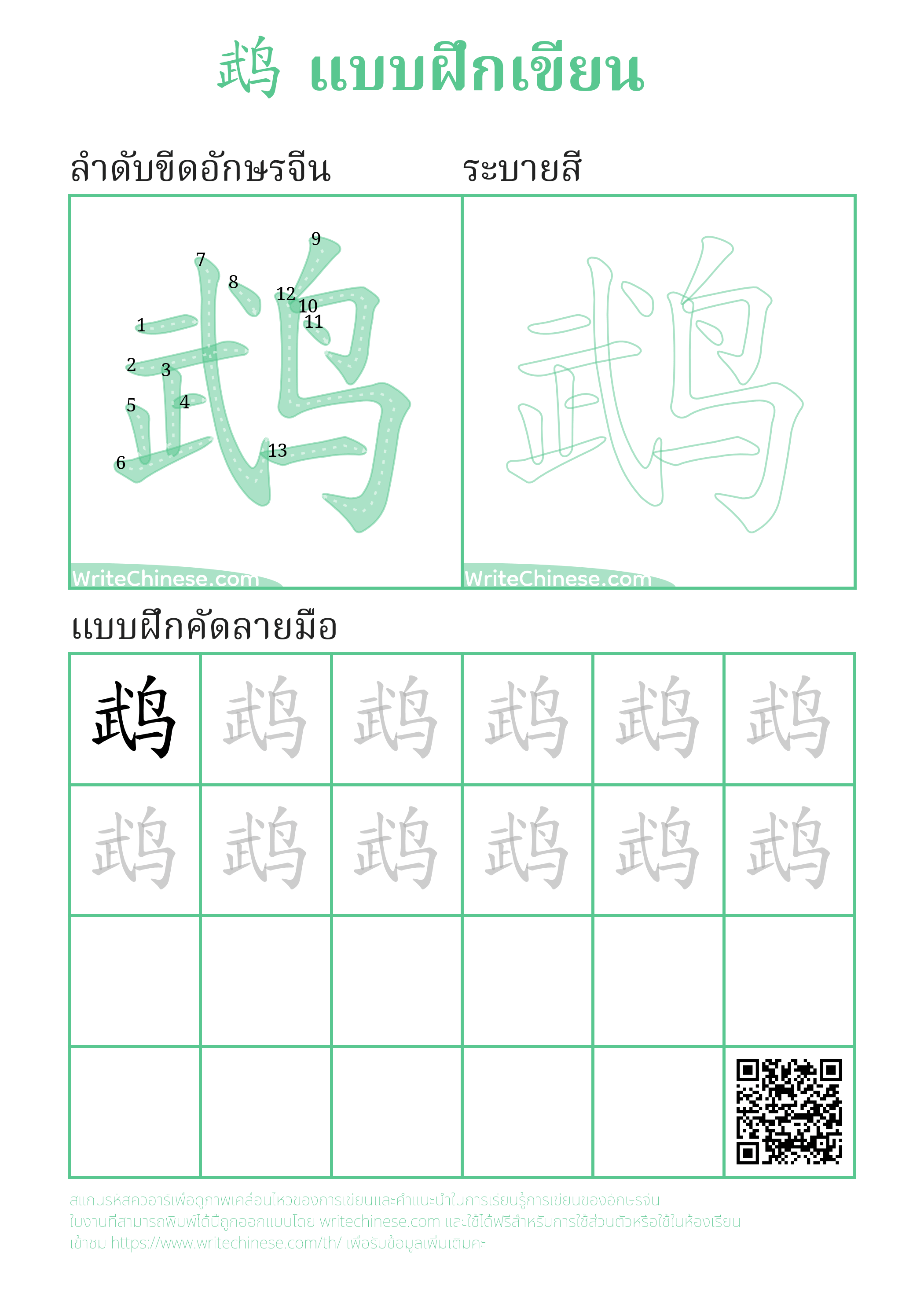 รูปภาพลำดับการเขียนตัวอักษรจีนทั้งหมด ภาพเคลื่อนไหว วิดีโอ และแผ่นงานพิมพ์ที่สามารถพิมพ์ได้ในเว็บไซต์นี้ เป็นฟรีสำหรับการใช้ส่วนบุคคลหรือใช้ในห้องเรียน กรุณาระบุแหล่งที่มาและ URL ของเว็บไซต์เมื่อนำมาใช้