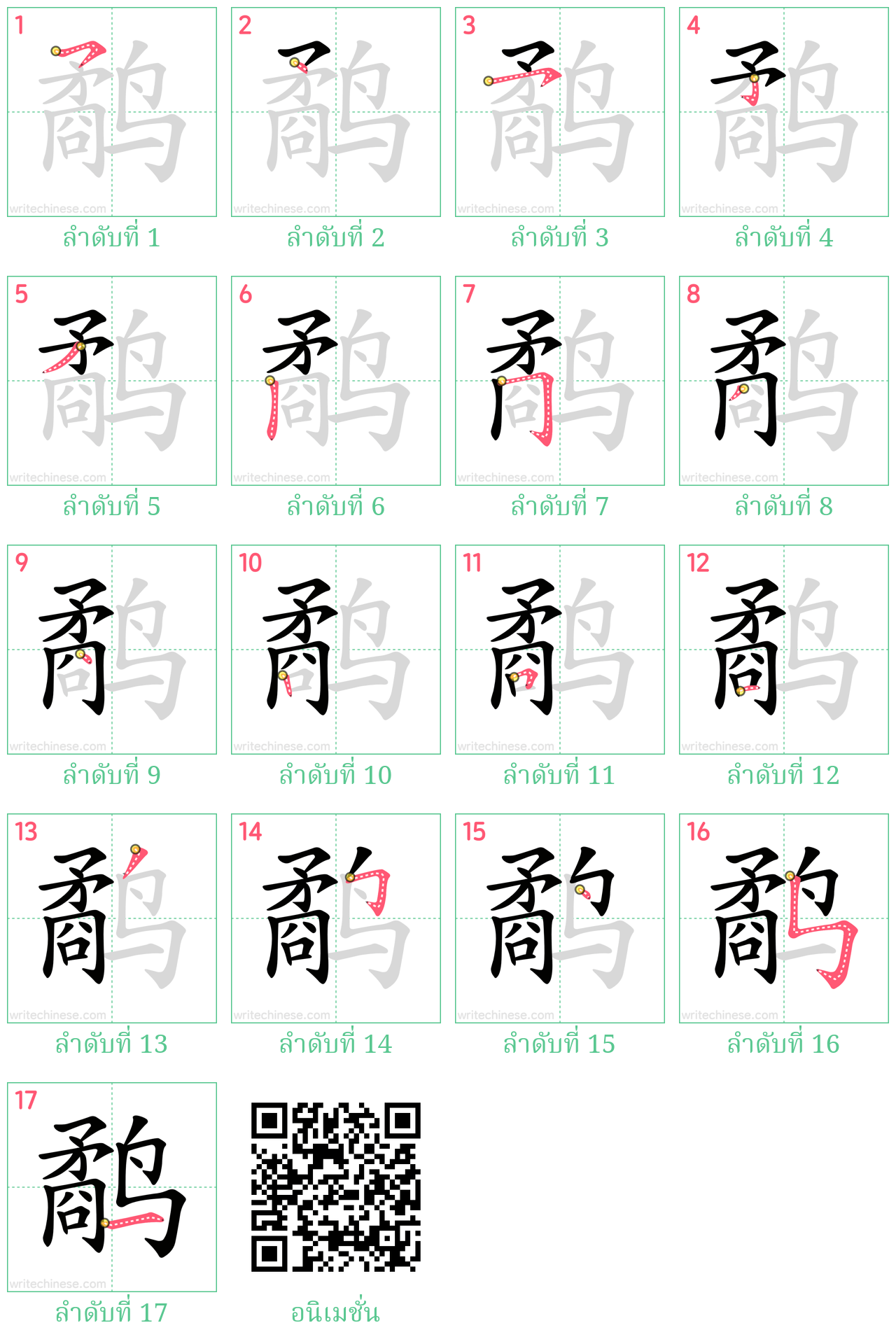 เรียนรู้การเขียนอักษรจีน "鹬" ขีดละขีดด้วยคำแนะนำขั้นตอนที่ชัดเจน